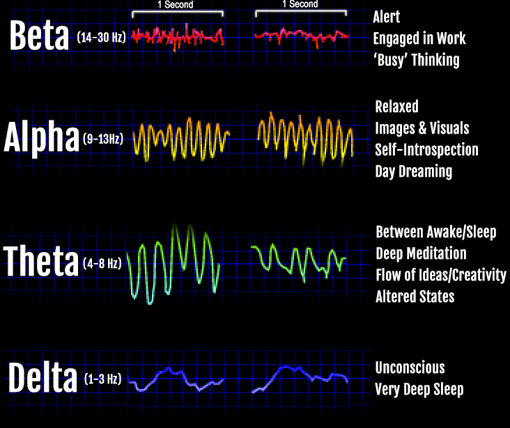 Our four predominant brainwave states are Beta, Alpha, Theta & Delta.